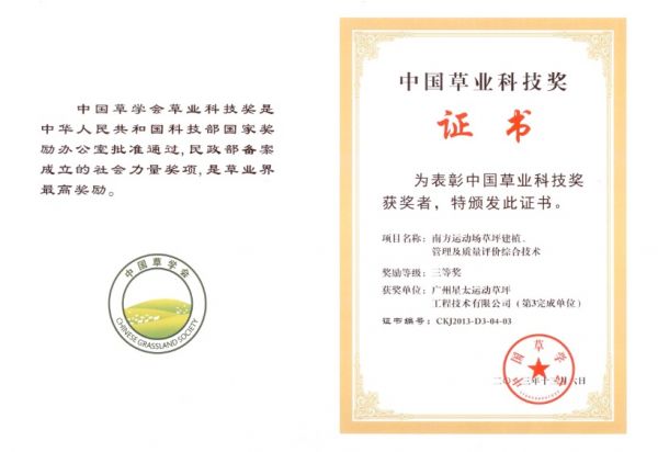中国草业科技奖证书