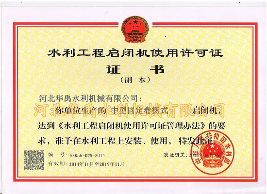 卷扬启闭机使用许可证